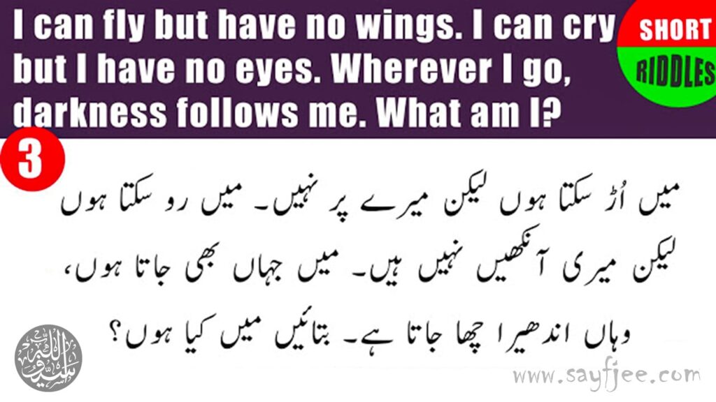 3. I can fly but have no wings. I can cry but I have no eyes. Wherever I go, darkness follows me. What am I?