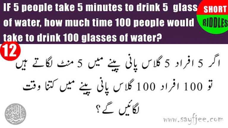 12. If 5 people take 5 minutes to drink 5 glasses of water, how much time 100 people would take to drink 100 glasses of water?