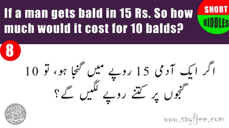 8. If a man gets bald in Rs. 15, so how much would it cost for 10 balds?